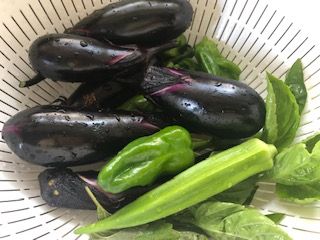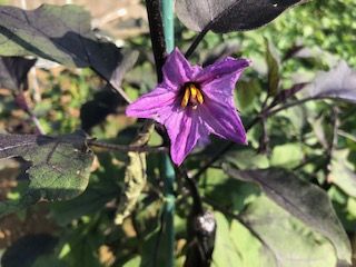 この花の咲いているナスの苗が1メートルくらいに伸びて