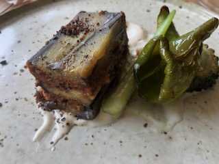 ナスのラザニア 自家製赤味噌とドライトマト ゴーヤ
