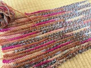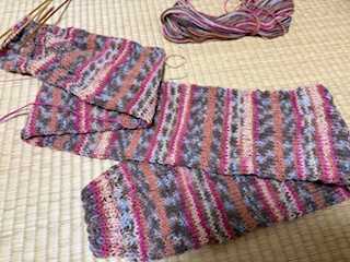 身体のどこも調子が悪くなければ、なんだってできる気分になる。生きていると誰でも、いろんなことがある。人間関係の悩みだったり、お金の悩みだったり健康の悩みもあるし、家族の病気や不幸なんかもあったりする。それでも生きていれば、いいことだってある。楽しいこともあるし、嬉しいこともある。ワクワクするこもあるし、達成感を感じるときもある。夢中で時間を忘れるほどやれる何かがあるとやっぱり人生は楽しくなるよね。これからまた、加齢とともに、何があるかはほんとわからない。また自律神経がおかしくなるかもしれないし血圧が爆上がりして調子が悪くなるかもしれない。だから、この調子がいいときに楽しみたいわ~って気持ちが強い。楽しめるときに楽しもう。楽しくできるものがあるときに楽しもうと思う。今のところ、まだ編み物熱は冷めてなくてがんばってポイントマフラーを編んでいる。ただメリアス編みに編むだけで、模様が現れるオパールの毛糸は楽しい。でもさすがに何時間も編んで数センチしか進まない編み物はやる気がないとできないね。クラフトバンドのバッグの方はずいぶん早くできるからいいけど、もうジム用の小さいバッグも普段持つようのバッグもたくさんあってこれ以上はいらないもんね、、、(10個以上はある。そのほかにも物入に使っているものもある)編み物は肩が凝りそうだけど、今のところは大丈夫。一日一回、必ずなにかの運動をして、朝と昼間、首と肩のストレッチをしているからか、編み物は今のところ大丈夫な感じ。私の肩と首の凝りはなんか編み物で凝る感じではないのだよね。自律神経が乱れているときに特に凝りを感じるので、原因が違うのかな。やっとポイントマフラーが終りそう。長い旅だったわ~毛糸は1個なのだけどね。(100g)このマルティナさんのポイントマフラーと同じ目数なのに、私の方が太いマフラーになった感じ。私の編み方が緩いのかも。いつもポチをありがとうございます(^^)/「いいね!」も押してくれて嬉しいです。今日も押してくれると喜びます。にほんブログ村にほんブログ村<