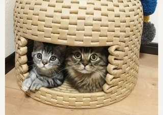 今までで一番の大作のエコクラフト手芸。猫のチグラ、、、時間をかけたわりに失敗( ノД`)シクシク…イメージはこんな感じで可愛くしたかった。丸くどんどん編んでいる最中にもう失敗に気づいたわ。、、、小さすぎる。夫にも息子にも絶対、愛猫のサイズじゃないと言われたけど、編み直すのも大変なのでそのまま作り続けた。夫なんて「あーちゃん、大猫だから無理。」とかいう。確かに我が家の愛猫はメスなのに大きい。普通はメス猫は小さいっていうけど、大きい。保護猫カフェで初めて見た時はアメリカンショートヘアの子猫にそっくりだったのに、だんだん違ってきてどんどん大きくなっていったのだよね。顔は小さいのに身体は大きい感じ。最近は測ってないけど6キロ近いと思う。同時に二つのかごを編み始めて最後はそれをくっつけて完成。後ろからみたところ。茶筒みたいな形になった。入口はちゃんとある。愛猫は興味津々で入りたそうなのだけど小さすぎて入れない( ;∀;)諦めた模様の愛猫。せっかく作ったのでなんかの物入れにするつもり。とりあえず、エコクラフト手芸をやっているときに散らかるのでエコクラフトバンド入れにしよっと。失敗したけど、楽しめたからいいことにした(^^)/愛猫の4歳のプレゼントのつもりだったのだけどね。9月20日で推定4歳。12月20日に初めて我が家にやってきてそのときに保護猫カフェのオーナーさんがこの子猫は3か月くらいなので9月20日と誕生日を決めてくれた。元気で大きくなってくれてありがとう。いつも癒してくれてありがとう。いつもポチをありがとうございます(^^)/「いいね!」も押してくれて嬉しいです。今日も押してくれると喜びます。にほんブログ村にほんブログ村<