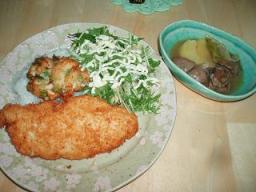 この前の夜ごはんを・・・・ 「ささみチーズカツ」 「アスパラ入りナゲット」 「肝味噌煮込み」 使ってますよー宮崎より産地直送 全ての鶏肉料理に最適!! 宮崎産若鶏 ささみ(1kg)ささみはスジをとって 叩いて薄くのばし 塩胡椒した2枚の間にチーズを挟んで衣をつけて揚げる宮崎より産地直送 全ての鶏肉料理に最適!! 宮崎産若鶏 肝(1kg)肝は下処理をして 味噌、酒、砂糖、だし汁、生姜、長葱、じゃがいも全部まとめて煮込む★【送料無料】★「百笑組」野菜セット野菜農家の仲間たち(百笑組)の減農薬で野菜の自然の味...とっても細いアスパラが入ってたので細かく切ってからミンチにしてたささみとチーズと混ぜてナゲット風に揚げてみました意外にもアスパラのいい香りと味が効いてて美味しかったですよ水菜はしゃきっとするまでお水につけておいてキレイに洗ったら 生姜の千切りと長葱の千切りと胡麻油を混ぜて マヨネーズをかけて食べました特別栽培農産物の基準で栽培!有機肥料たっぷりで丹精こめて育てました。安心安全 林さんちの...このじゃがいもは煮込んでも崩れないです味もよく浸みるし お気に入りですでは またね~