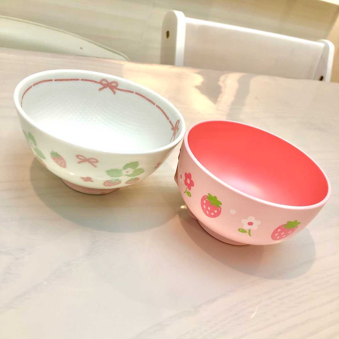 我が家に新しくお迎えしたのは 娘用のお茶碗と味噌汁用のおわん。 マザーガーデンの可愛らしいデザインと 特許を取得した「くっつきにくいご飯茶碗」に惹かれて購入。 いちごとリボンが可愛いなあ😍 内側には「ごちそうさま」の文字。 これまた可愛い😍 お米がくっつきにくいようにぷつぷつ突起があります。 味噌汁用のおわんはレンジも食洗機も可で使い勝手が良さそう💗 使うのが楽しみだ😚🎉 【製法特許取得商品】 マザーガーデン 野いちご くっつきにくい ご飯茶碗 中 《リボン柄》 磁器 子供用お茶碗 キッズ食器 ライスボウル 日本製 食洗機対応可能 マザーガーデン 野いちご 汁椀 小《お花柄》 子供食器 味噌汁椀 お椀 子供用 うつわ 子ども椀 おわん 食器 女の子 雑煮椀 吸物椀 野いちご柄が好きなので こちらにしましたがその他には うさももちゃんやしろたんも 可愛いです🐰 マザーガーデン うさもも 汁椀 《お花柄》小 お味噌汁椀 お椀 おわん お碗 子供食器 女の子 子供用 子供食器 うつわ 子ども椀 食器 ランキング1位!!【キッズ用食器>汁椀】マザーガーデン しろたん 汁椀 小サイズ 《お顔柄》 お味噌汁椀 お椀 おわん お碗 子供食器 食欲の秋 ROOMもやってます☺️