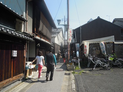 応援して!クリックするだけで募金できます。一日一回クリック募金。 今日は久しぶりの奈良町フリマの開催日でした。初夏を思わせる暑さでお客様も余り見えませんでしたが、気持ちの良い一日でした。サテサテ、今日のブログのタイトルがフリマとどんなつながりか??と言うことで、チョッピリ紹介をしましょう。奈良市元林院町は江戸から明治にかけては絵屋町と呼ばれていたそうで、興福寺、東大寺に関わった絵描きさんが沢山住んでいたと思われます。奈良公園猿沢池の一筋東の100メートル足らずの一筋が町並みです。大正から昭和にかけてここが奈良でも有数の花街として栄えました。爺っちゃんはこの町で生を受け少年期を過ごした思い出の場所です。現在フリマを開催している場所がかっての自宅だったと言うことです。今も数名の芸妓さんが一軒になった置屋さんで働いておられるようです。さて、近年この花街元林院町を紹介する写真ギャラリーが出来ましたが、ほとんど人には知られていません。路地の奥の一角の芸妓検番の側に作られ、花街元林院の過去の写真を展示しています。爺っちゃんも今日訪れて懐かしい我が町の写真を鑑賞してきました。ここをクリックして下さい。芸妓さん紹介のホームページへリンクしていますす。今日の猿沢池の亀さんたち奈良町フリマのディスプレー元林院写真ギャラリーフリマの庭に紅葉の花が咲きました◇◇◇◇◇◇◇◇◇◇◇◇◇◇◇◇◇◇◇◇◇今日のお食事朝、トースト、野菜サラダ、コーヒー昼、竹の子ごはんのおにぎり夕、自家製きつねうどん