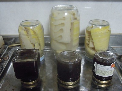 応援して!クリックするだけで募金できます。一日一回クリック募金。 婆っちゃんは昨日コープと針でゲットしたイチゴと竹の子の保存食の製作にかかりました。イチゴは5パックをジャムに炊きあげました。ほぼ一日煮つめ上げて夕方には瓶詰めに仕上がりました。竹の子は小さめに切ってゆっくり茹で上げました。ホームセンターで瓶を購入してお正月用の瓶詰めにしました。イチゴは早速試食しましたが、超甘口に仕上がって、爺っちゃんの糖尿には困った製品です・・・・。と、言いながら爺っちゃんはしっかり試食しましたがサテ?????。◇◇◇◇◇◇◇◇◇◇◇◇◇◇◇◇◇◇◇◇◇今日のお食事朝、トースト、野菜サラダ、コーヒー昼、竹の子ごはん、煮物夕、竹の子ごはん、竹の子と豚コンの煮物、味噌汁