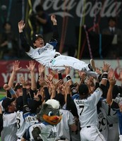 応援して!クリックするだけで募金できます。一日一回クリック募金。 今日のミーチャン新作のタイガースミーチャン巳に見えるかな???晴ぼんは遠足でキッザニア甲子園へ行きました。2回目の来園でしたので段取りもよく解っていたため大喜びで帰ってきました。で、帰った途端に再び甲子園へ金本兄貴の引退試合の応援にとんぼ返りし、たいへんな一日になったようです。甲子園は何と超満員で立錐の余地が無い大入りでしたね。今シーズン新の4万7千人強の入場者でした。普段の最終戦なら5位のていたらくで閑古鳥が鳴くはずが、金本の凄さを身に浸みて感じました。対戦の三浦投手も実にフェアに兄貴の面目を立てて完投負け投手に甘んじてくれ、頭の下がる試合でした。8時半には金本がウイニングボールをキャッチしてゲームセットで早じまい。その後、1時間余り兄貴の引退セレモニーがあり、お客さんは誰一人として帰らなかったですわ。横浜の応援団も有り難う御座いました。あの清原が花束を持ってお別れに来てくれたのはビックリでしたね。とにかく有意義なトラちゃんのシーズン終了になりました。ご機嫌晴ぼん兄貴の胴上げ恒例のジェットフーセンお別れのセレモニーウイニングボールのキャッチ一人でグランド一周でファンに御礼◇◇◇◇◇◇◇◇◇◇◇◇◇◇◇◇◇◇◇◇◇今日のお食事朝、トースト、野菜サラダ、コーヒー昼、ごはん、鯛の塩焼き、ラッキョ、味噌汁夕、甲子園で婆っちゃん手づくりのお弁当