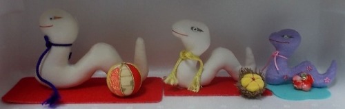 応援して!クリックするだけで募金できます。一日一回クリック募金。 婆っちゃんの試作中の干支巳・ミーチャン人形の完成品が出来ました。まだ大きさ、色、付属品は変化がありますが一応この3匹を基本にするそうです。秋のフリマで販売する予定です。◇◇◇◇◇◇◇◇◇◇◇◇◇◇◇◇◇◇◇◇◇晴ぼんは運動会の代休で今日は学童でお世話して貰いました。3時からお迎えして歯医者さんのフッ素塗布に行きました。夜は用心しておうどんの夕食になりました。今日のお食事朝、トースト、野菜サラダ、コーヒー昼、雑炊夕、鮭お握り、肉うどん