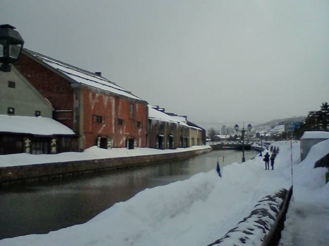 夕方の発車ですので時間待ちに小樽まで行き運河まで雪道を歩きました。