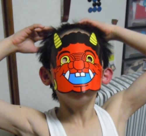 食後は豆まきで「鬼はああ外・・・・福はああ内」張り切ってまき散らしてから厄除けのお豆を10個食べて厄払いをしました。