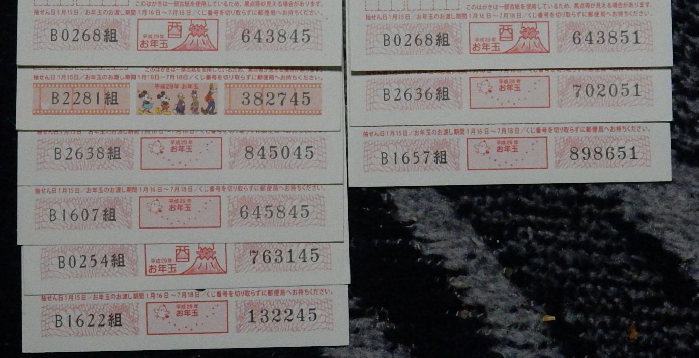 貰った年賀状は450枚あまりでしたので当選率は2パーセントと言うことです。