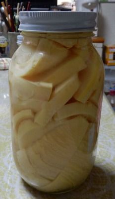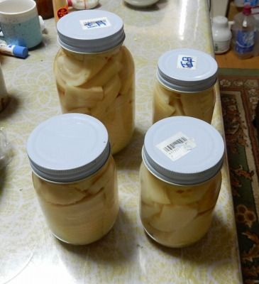 昨日から作り始めた竹の子の瓶詰めですが、一日がかりで4個の瓶詰めが完成しました。