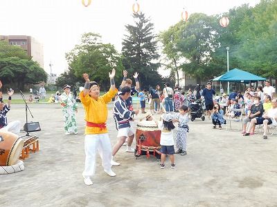夏の恒例行事・月寒平和公園の盆踊り大会に乱拍子も参加していますので今年も応援に出かけました。