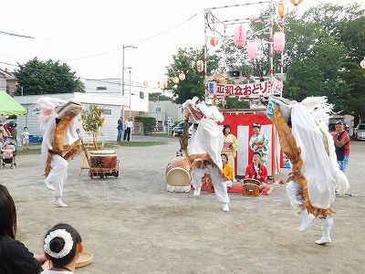 乱拍子も太鼓と獅子舞の公演をお祭の雰囲気の中で行い、出演者も観客に混じって楽しみました。