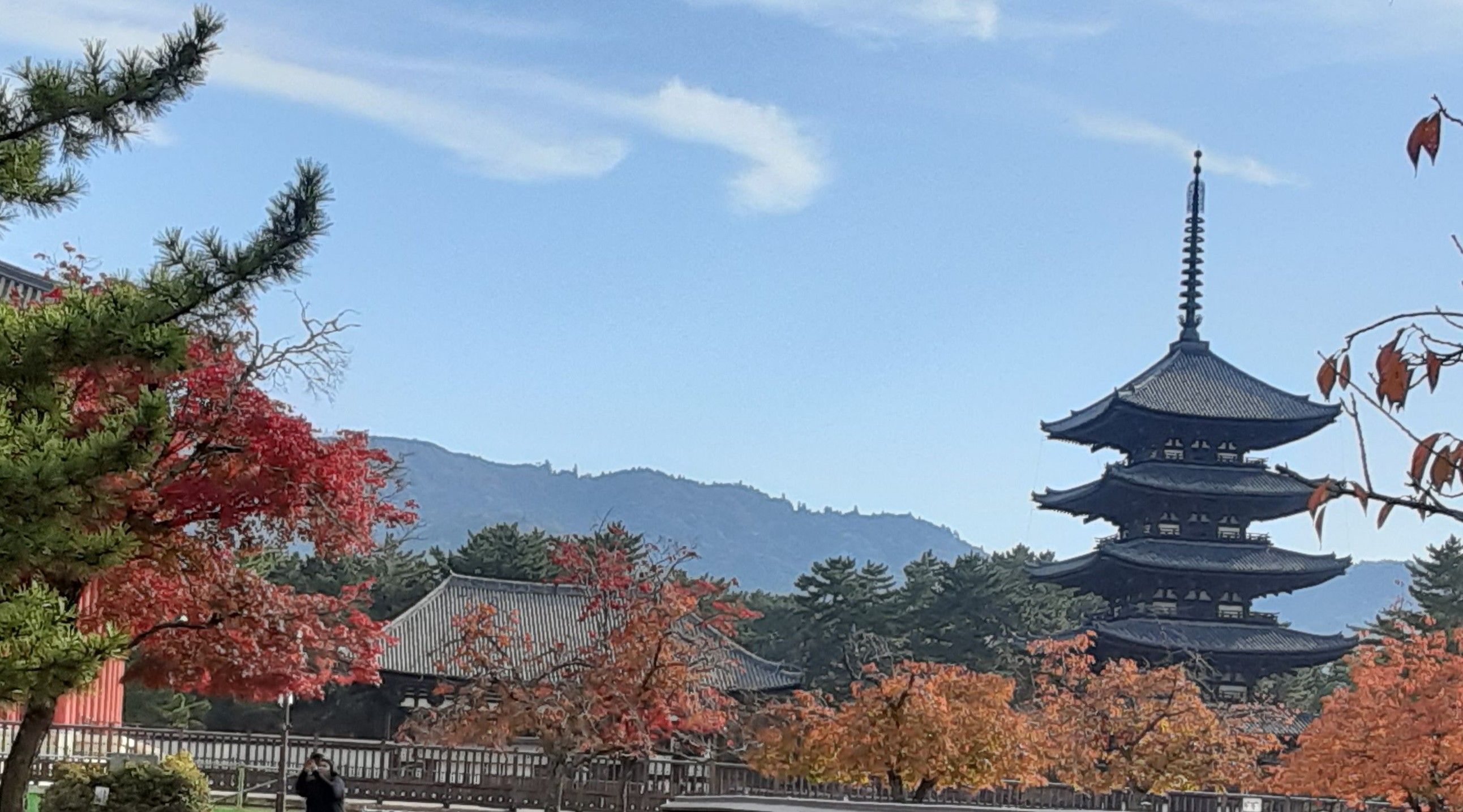 奈良公園の紅葉(こうよう)が始まったというニュースを確かめに、公園まで電チャリで出かけました。