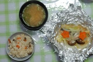 晴チャンは炊き込みごはんと鮭のホイル焼きを選択、頑張りました。