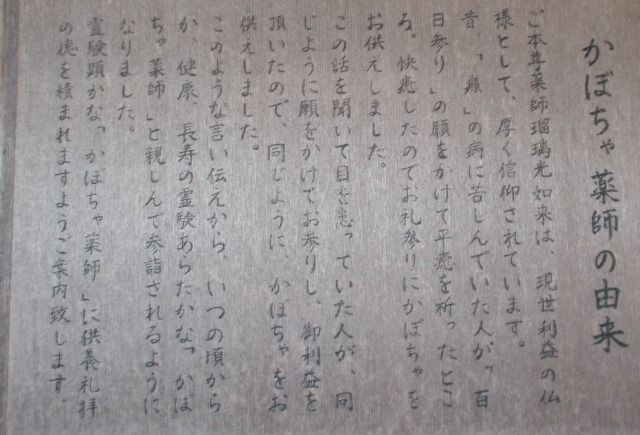 家と店の中間点ほどの場所に「かぼちゃ薬師」のお堂が有り、休憩を兼ねて参拝しました。