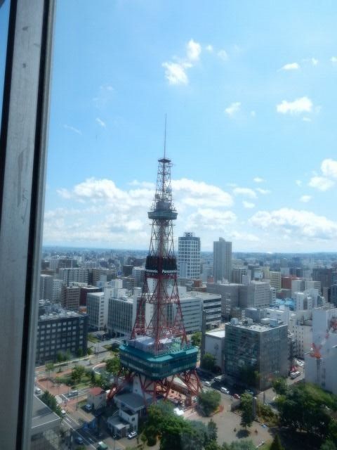 久しぶりで楽しみにしてましたが、残念ながら1時間以上の待ち時間とのことで登頂を諦め、市役所の屋上展望回廊で代替え、19階から札幌市街を展望しましたがこちらは完全に無人でした。