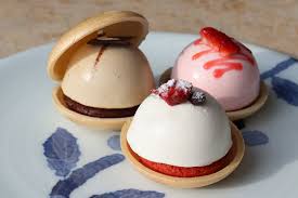 モナカの皮にケーキが乗っかっていてそれをもう一枚の皮で挟みそのままモナカにして食べるという結構面白い発想のお菓子でした。
