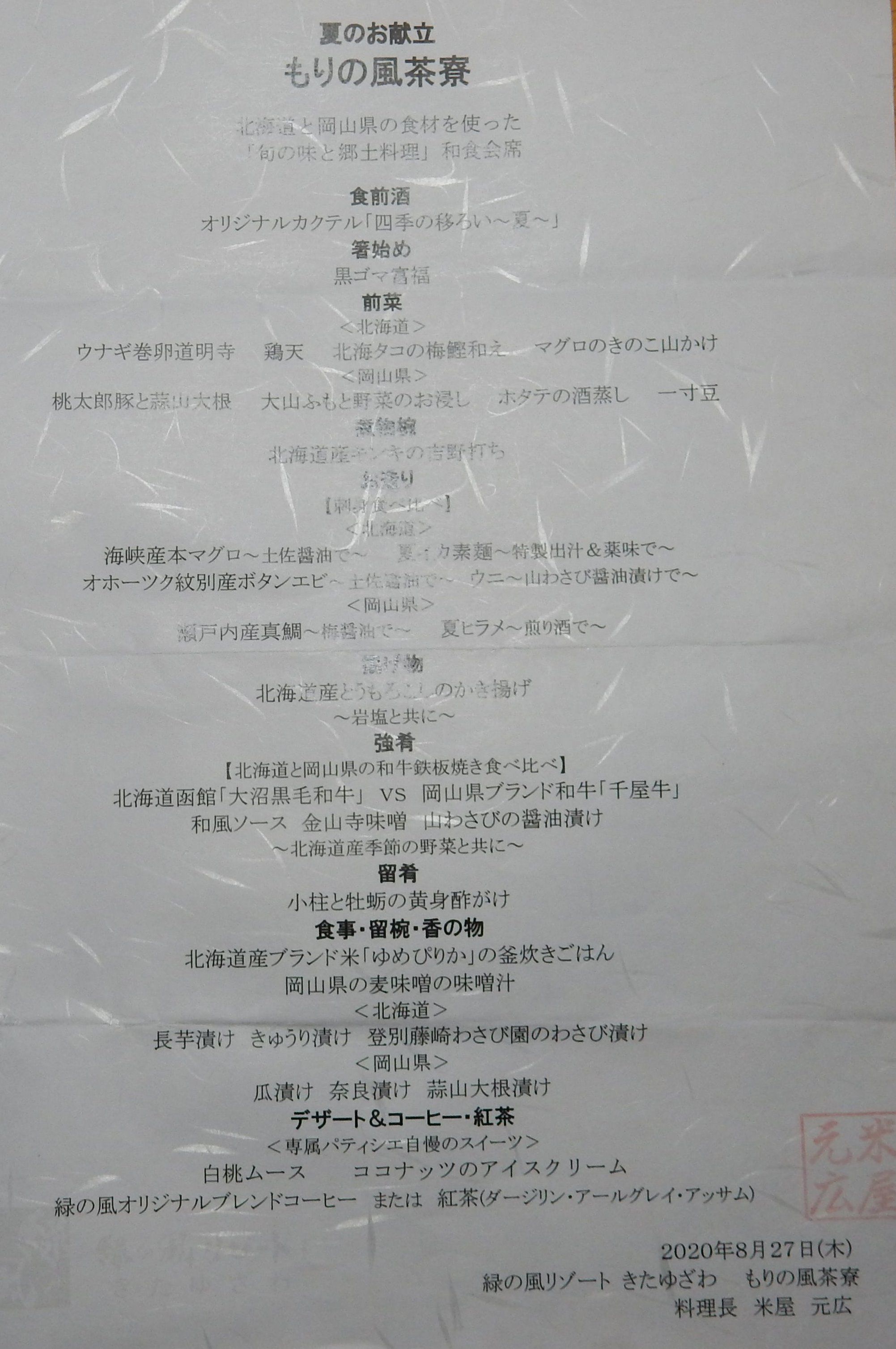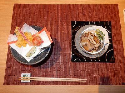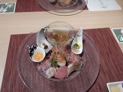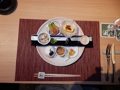 夕、ホテルの懐石料理