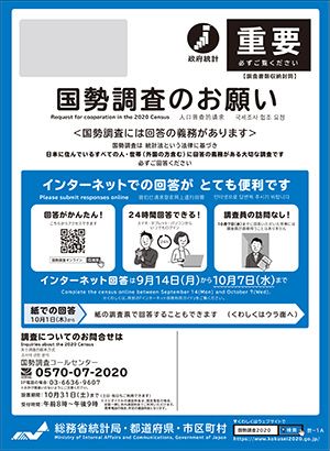 恒例の国勢調査が始まりますが、記入用紙科の配布をもらいました。