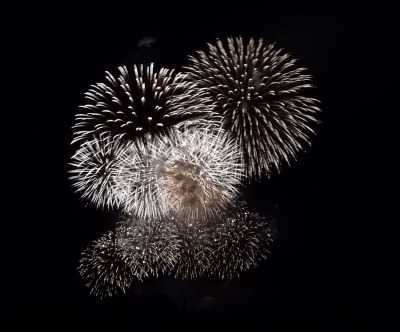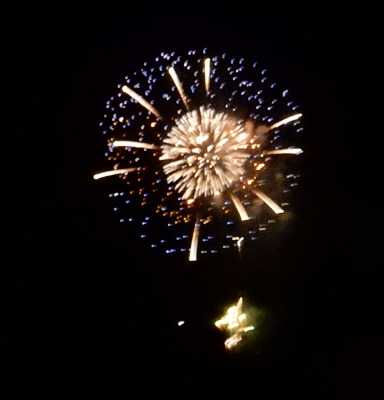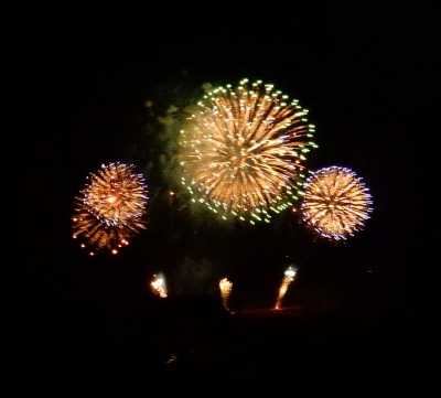 午後6時に花火の合図で打ち上げ花火が始まり、お天気も良く、自宅からは周囲の田畑が低いですので、田圃越しに、お山も大変良く見えました。