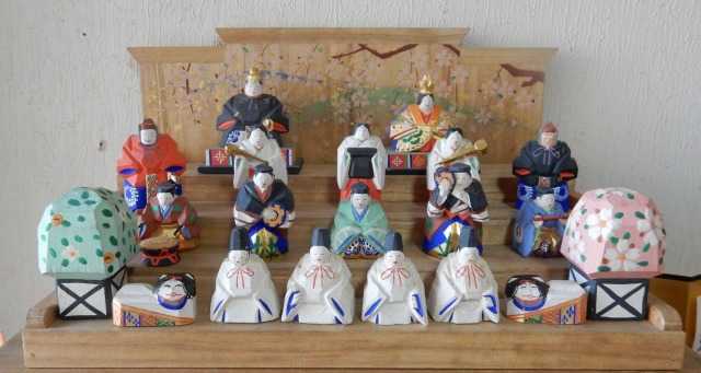 数十年前から伝わってきた手造りの奈良一刀彫りのひな人形と段飾りです。