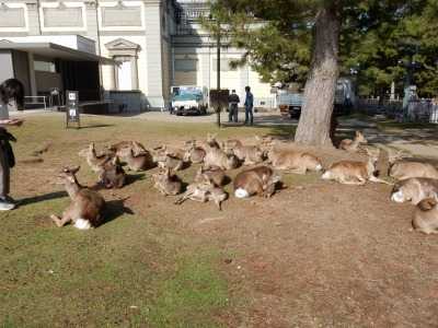 今朝は絶好の青空で、朝食後、人出の出ない早朝から奈良公園へ向かいました。