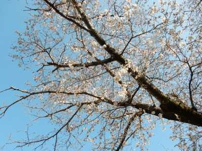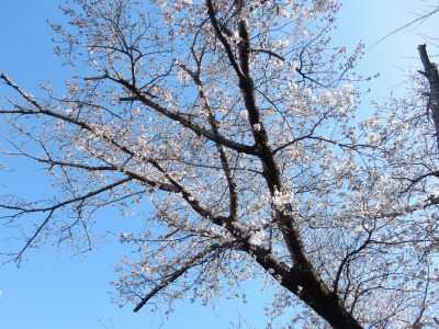 この桜は周辺で最も早く咲く「一番桜」ですが相当古くなった桜の木は、悪性の腫瘍が見つかって、患部の枝を切除するなど、樹勢回復の治療が行なわれています。