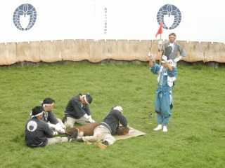 3頭の角鹿の角きりを見ましたが、沢山の勢子が鹿を追い、ロープで引っかけ鹿を押し倒す迫力はスリル満点でした。