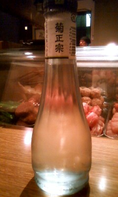 万治二年(1659年)から酒造りをはじめた菊正宗ですが、江戸時代後期より江戸送りの「下り酒」人気が高まり、江戸っ子にこよなく愛されました。今では全国各地に「正宗」を付けた銘柄が数多くありますが、実は本家本元はこの菊正宗で、もともと単に「正宗」が銘柄名でした。明治時代に商標登録をしようとしましたが、そのときすでにあちこちに正宗が存在していたので認められなく、そこで「菊」を冠したとのことです。そうした背景のためかどうか分かりませんが、なぜか江戸前寿司屋さんでは菊正宗を置いてあるお店が圧倒的に多かったでのす。ただし、10数年前の阪神淡路大震災で罹災し、操業に支障をきたした影響でシェアをだいぶ落としたとの話しをどこかで聞きました。そんな菊正宗の営業マンが、私がときどき行く近所の焼き鳥屋へ営業して置いて行ったのが今回の酒。日本酒の扱いが面倒なので、焼酎を主体に置いている料飲店が多いのは、実態としてある程度マトを得ていると思いますが、そのための小瓶化がいろいろな形で進められています。もちろん料飲店でワンカップの提供はマズイですが、さりとてよくあるズングリした1合瓶も安居酒屋風でいただけない。そこで考えたのでしょう、今回のような細身のお銚子的な瓶。こうして飲み屋のカウンターに置いてあっても違和感はありません。客サイドからすれば、間違いなく1合が入っているので、一升瓶から適当に注がれて8酌くらいでごまかされているリスクはありません。菊正宗というと日本酒通はあまり飲まないでしょうし、また蔵元自身もながらく樽酒に力を入れているようですが、普通のこうした酒の辛口でドライなテイストは、料理を邪魔しないという意味で存在価値はあると思います。意外と思われるかもしれませんが、菊正宗は生モト造りにこだわる蔵でもあります。