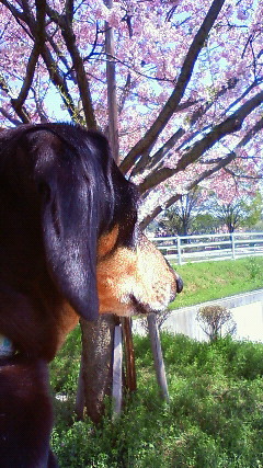 愛犬とのプチドライブ。 近くの公園に行って、ブラブラと歩く。 昨日は天気も良かったし、まだ咲いてる桜とパチリ。 シェリーとさくら。 ではなく、 シェリーと桜。