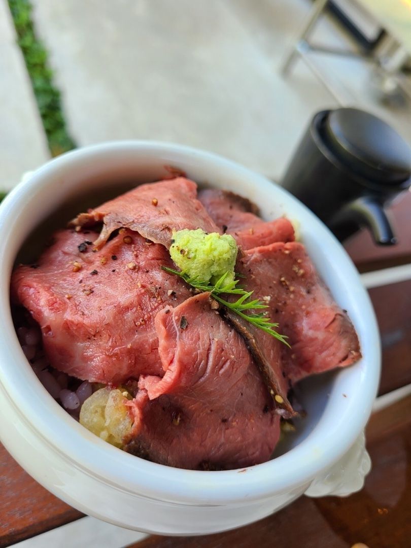 頼んだのはそば&ローストビーフ丼(1400円)に