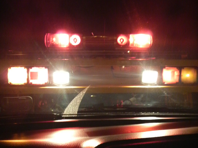 私だけ取り残されて、トラックの荷台で車ごと護送中(?)\(>_<)/