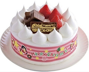 ローソン限定けいおん!!のクリスマスケーキですサイズ5号(直径15cm)4~5人向けきゅんキャラ唯ちゃんセットで3,980円ミニマスコットセットで4,500円です予約しちゃおうかな・・・