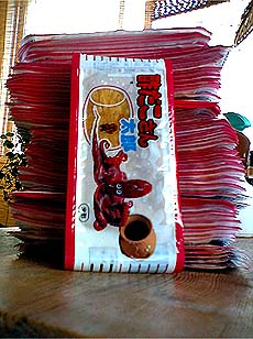 我が家の赤いヤツが・・・増殖中・・・誰か、とめてくれ・・・え~、70枚はあるそうです。相棒さんは、目に入ると買占め行動を開始します。この前は、コンビニの店員さん2人して数えていただいたようです。近くのコンビニは、今まで30枚仕入れだったのが、倍の60枚仕入れに増強。はやく、飽きてくれ~。
