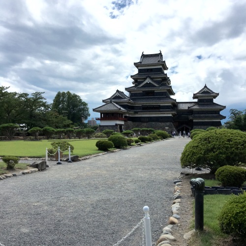 なんとなく見に行きたい場所の一つに、松本城があり、思い立って行ってきました!台風直撃の予報が出ていて、ヒヤヒヤしましたが、なんとか行って来れて一安心です。松本城は、JR松本駅からバスでもいけますが、歩いても15分くらいです。途中もちょっと素敵な感じでした。池に鯉が泳いでいますが、なんとなく水がきれいなイメージです。天気はかろうじて雨は降ってない感じですが、天気だともっと綺麗かと お盆中の平日とはいえ、中を見るには待ち時間60分とのことせっかく来たのだから、待ってみました風情のあるお庭を眺めていると、周りはやっぱり観光客が多そうな感じです。入場して一番驚いたのは、階段が急なこと!下るのが結構滑りそうな感じで、結構滑った音も聞こえました秀吉の時代から城主を変えつつ、残っているそうで、雰囲気がすごい!鉄砲を出す窓とか、要塞だったんだなと思いました天守閣まで登ると遠くの中央アルプス、南アルプス、北アルプスの山がよく見えます結構並んだけど、登ってみてよかったと思いました