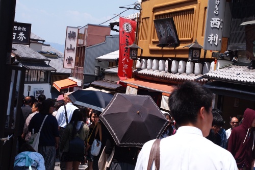 朝、京都駅からバスに乗って、清水寺へ行きましたバスは修学旅行生などで長蛇の列で、乗る前から心が折れそうに。。。まだ売店が開く前の時間だったのに。。。バスを降りてしばらく歩くと入り口が見えて急な坂と階段を上ると仁王門が見えてきました三重の塔が工事中で見れなかったのは残念でしたが、本堂は拝観することができました本堂の有名な舞台の上は最初に行ったときはまだそんなに混んでいなくて、一人一本というお線香(?)を入れようとしてアチチチとなったり煙を一杯浴びてきました本堂を抜けて、何となく道に沿って音羽の滝へ。。。この滝の水は清めの水として、連日行列ができているそうです。本当は音羽の滝へ階段を降りて行く前に、地主神社にお参りするとよかったのですが階段が一方通行(?)なのを知らず、進んでいってしまい。。。どんどん建物が遠ざかり。。。気づくとまた仁王門の前に戻ってきてしまいましたそんな私のような人向けに、清水寺の案内が有効かもしれないと後で知りました。まあ、せっかくだからお参りしておこうかともう一度本堂を経由して地主神社へ。。。到着〜〜縁結びの神様だそうで、おみくじやお守りがたくさんありました。とりあえず恋みくじを半吉です。人生は長いのであせってはならないそうです旅での満足度は高いとのことで、恋というよりは普通に人生訓として(?)いい内容だなーと思いました吉から上は持ち帰ってもいいと説明書きがあったので、持って帰ってきました今度は別のルートからぐるっと回って下りました。