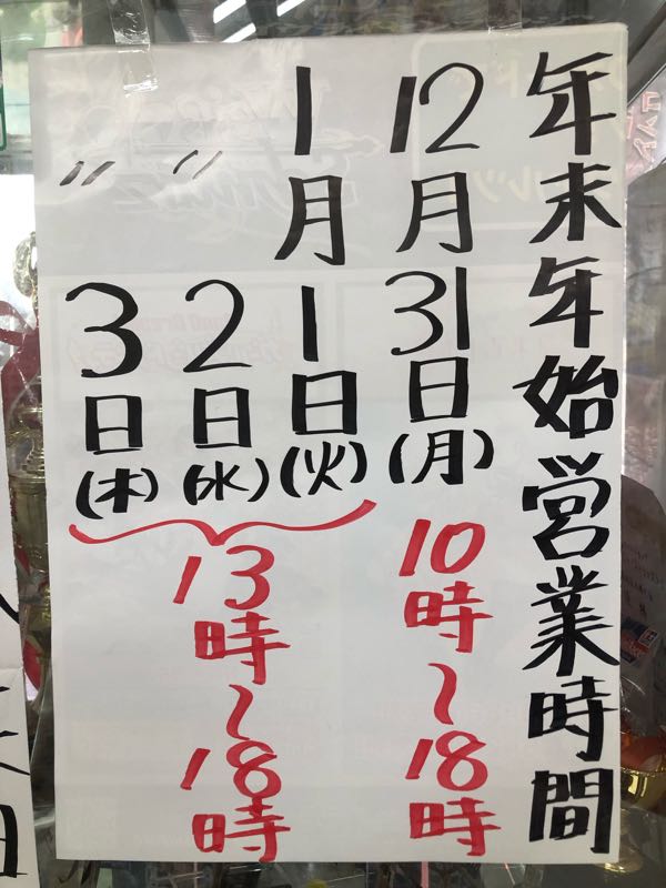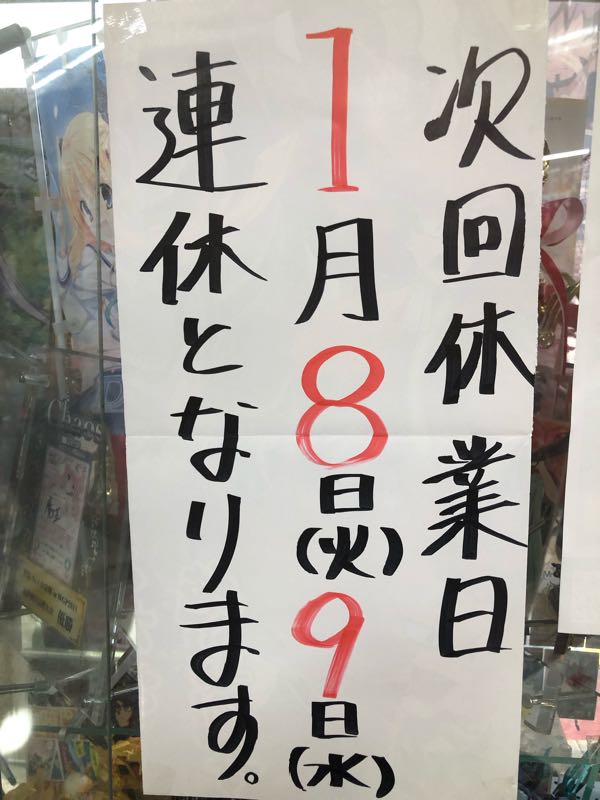 次回休業日は一月8日9日となります 宜しくお願い致します