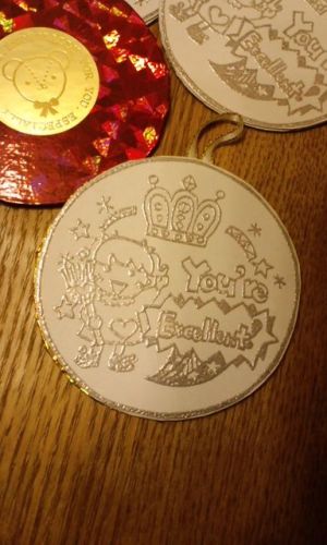 私の仕事は。ここ5年ほどメイン→小論文添削 でありますが。今年度は 小学生と一緒に勉強する 大きなお仕事にめぐまれ 愉しい1年を過ごしました。そのお役目も もうあと2日でおしまいです。そうじにやる気をだしてもらうため お掃除ポイントを導入し最後に 金メダルでも作るか!と決めていたのでした。それで メダル作成!もちろん わたしのオリジナリティをだすんだったら はんこ で 作るのがいいでしょう!!とずっと思っていました。これ!(これは女の子バージョン)ブライダルの粉を エンボスして ちょっとゴージャス感をだしてみようと。ゴージャスとまではいかなかったけどメダル的な雰囲気は上がった感じがします(^_-)-☆裏は キラキラシートをはりました。男の子 バージョンもありますしポイントによって EXCELLENT! と NICE! との言葉分けもしてます。3パーツを合わせて1つのメダルを作る用にしたのでほうきを持ってる絵柄と言葉をかえるとこれから 他のメダルにも応用できます←って また こんな週1~2程度のしかも朝 娘を送迎したあとからでいい なんていってくれる勤務体系の仕事の依頼がくるのか といえば あんまりこなさそうなのですがともかく 可愛かったこどもたちの笑顔を頭に浮かべメダル生産がんばりました♪よろこんでもらえるといいな~♪にほんブログ村ランキングに参加しています。ぽちっとしてもらえると嬉しいです(^_-)-☆