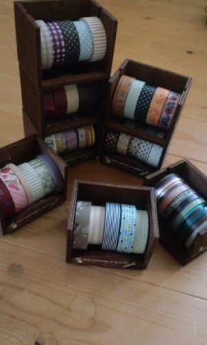 じつは ワタクシ。 マスキングテープもコレクションしてまする。はんこ心をくすぐるんだよな~コレ。いや はんこ心ではないか(笑)昔から 色味があるものを 少しずつコレクションしていくのが好きなんです。色鉛筆とか。布とか。はんこのインクとか。トールペイントの絵具とか。どんどんすぐに集めちゃうのはもう性(サガ)なんでしょうね。そんな私のマスキング(通称マステ)をしまっておくのに。とってもナイスなケースを 本日発見。これですよ~。スタッキングできるのが優れもの。そして お値段なんと 1コイン100円ショップですよ!いや~~ セリ〇さん いい仕事してくれます♪全部収納するには ちょっと数が多すぎるので ヘビロテものをしまってみました。飾りながら 使えるのが便利ですよね。他にもってるマステも一緒にパチリ。はんこの ラッピングにつかったり。タグのアクセントにつかったりしてます。ほかにも個人的に マステはいろいろ便利で。あちこちに登場アイテム。最近 mtさんから ほんとに可愛い模様がでるのでもう たまらないですね。(*^_^*)