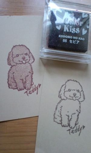ひさしぶりに はんこを彫りました。(えと 夏休みはですね 息子の野球に必死に追っかけをして とてもとても はんこを彫る時間がありませんでした( ̄▽ ̄;))オーダーいただいた トイプードルの TEDDYちゃんです。他にも こんなトイプーくんを彫ったり図案を起こしたりしてみてました。彫り彫り しおえたらば。おまけの お手製クラフトケース(といっても ただの箱ですが)をつくります。このジャストサイズに 展開図もなく フリーハンドでつくる技。特許ほしいくらい 得意です(笑)TEDDYちゃんと一緒にあるはんこはハンドメイドのお洋服作家さん Shameripink さんより オーダーいただきました。いろいろ フォントを提案させてもらって。お気に入りを選んでいただきました。うん。ガーリーな雰囲気にぴったりな はんこになった気がします。そして ラッピング。主役ははんこなので・・・あんまり ラッピングがゴージャスになってもねぇ なんていう言い訳をいいながら シンプルな感じで ラッピングです。(すみません みなさま センスが いまひとつで(-_-;))・・・・・お渡しするときに。オーダー主さんが わぁ(≧∇≦)ノ彡と喜んでいただけるのが最大の喜びです。お気に入りになってくれますよぅに・・・・・