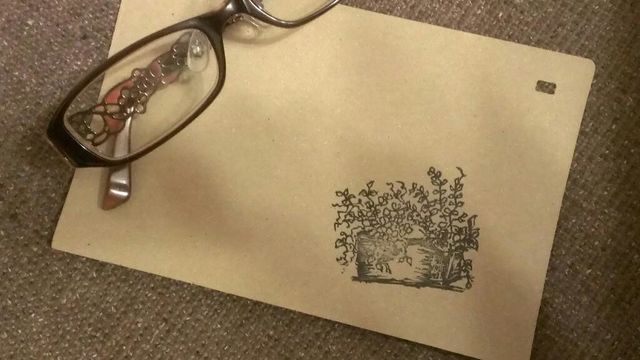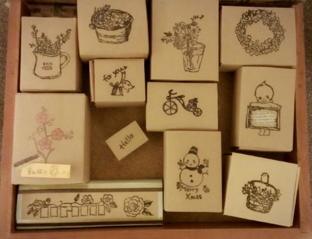 木箱に はいったお花を とのオーダーで。こんな感じになったけれど お気に召していただけるかしら・・・ちょっとイメージが違います・・と言われましたら私のヘビロテはんこの仲間入りになりそうな(笑)こういうお花のはんこ とても好きなんです。ポンと押すだけで いい感じのカードになるとこが便利です。