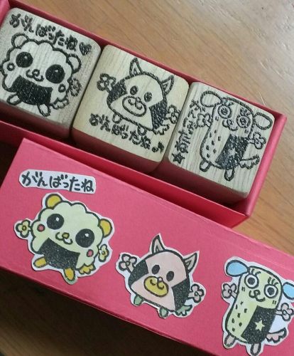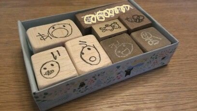 はんこのお仕事は 趣味に毛が生えた程度で。普段 お給料をいただくために 2つほど仕事をしておりまして。そのうちの ひとつ。 の場所で 出会ったこどもたちに プレゼントするつもりの「マイキャラクターはんこ」。それぞれの マイキャラクター。トレードマークっていうか。そういうのを描いてもらったんです。はんこにして。 シールも作ったら にぎやかで 元気いっぱい。BOXも作りました。はんこ って。 なんか 元気がワクワクしてくるんです。こういうのを作るときに ほんとにそう思います(*^_^*)