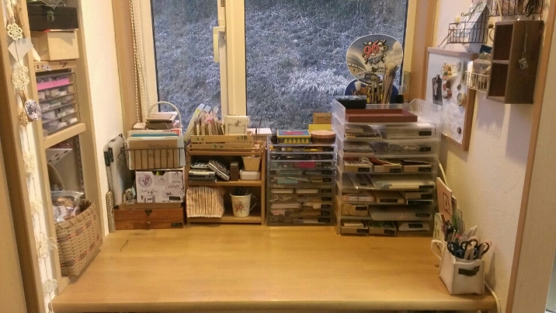 家を7年前に建てたとき、キッチン脇に私の趣味コーナーを作りました。当時はトールペイントに夢中になっていて、机のすぐ脇の食品庫の半分はトールペイントの本。でも その後トールペイントは一緒に描く友達とも引っ越しで離れてしまったことと、ブームが世の中から去ったこともあいまって ご無沙汰に。そして その後 新たな趣味、消しゴムはんこ作りにはまったのでした。ハンドメイドのイベントに誘ってくれる友人もできてきて。ラッピングなどもしているうちに紙雑貨も大好きになってきて。気づけば、紙類、文房具類がどんどんたまり、あっちこっちに 袋や箱にいれてのストック、なんだかごちゃごちゃ大変なことに(((^_^;)こまごましたものも多いので分類して使いやすくしながら整理するために奮い立ちました!←なかなか手をつける勇気が今までわかなかったけど とうとう!!ここ数週間 終わりの見えない片付けをしておりました… 片付けの途中って広がりまくるんですよね…家族には ここ、本当に綺麗になるの?と白い目で見られつつ。じゃーん!スッキリした机まわりです。嬉しいっ!!!もうちょっとおしゃれに棚なども 見栄えよくしたかったのですが予算というものもあり 理想の実現とまではいきませんでしたが、使い勝手優先で。すぐ使えて すぐ戻せる というのをコンセプトに。食品庫の下2段はトールペイントの本だらけだったのを思いきって処分&整理。BOOK・OFFに大きな紙袋7冊も持っていきました。またいつか絵を描きたくなったときに参考にしたいものはとってあります。が 後ろのほうにしまい、手前に今使うものをもってきました。空いたスペースには100円ショップセリアなどで用意した棚を設置。よく使うはんこの資料と お料理のお気に入り本などもここに。あっちこっちにつっこんでたものがスッキリー!!これは机の下。この引き出しは はんこのインクなどを整理するのに、とっても便利。以前、文具店で50%オフでゲットしたもの。もっと買っておけばよかった…机の上のひきだしは 無印良品のお気に入り引き出し。2台を重ねています。ひとつに5引き出しもついてて 2000円。これはとっても使いやすい!全部で3台持ってます。1台は手作りはんこをしまってあります。この2台は文房具の整理に使いました。はんこが増えたら また買いたすつもり。黒のマステでラベルをつけました。これは昔、100円ショップで買った棚。これに合う引き出しを買ってきたら、モデルチェンジをしてしまったようで、サイズが微妙にあわずに入らない。で、返品しました。で、有り合わせの箱を引き出し代わりに使うことにしました。さて、このあとの写真は食品庫の下2段のアップ。机のすぐ脇に食品庫があるのでこのエリアは超使い勝手がよい棚なわけです(*^^*)ここは100円ショップにて、 セットで引き出しも買いました。サイズがあってるとスッキリだわー(*≧∀≦*)シールやレターセット、りぼん、透明袋などを整理。となりには かわいい紙や英字新聞、ラッピングに使う ペーパーバッグやらしまいました。すっきりー!!!見やすくなったなあ!さて、あとはマスキングテープのとこをもう少し整理して。そうしたら、また ちょいと イベントに向けてはんこを彫ります。これでダイニングテーブルに広げて家族にひんしゅくかってたのも解消できそうです♪