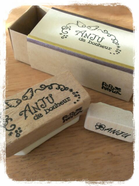 アトリエおはなばこカフェさんに 私のはんこがいくつか置いてあるのですが、それを気に入ってくださって はんこのオーダーいただきました。 値札用のミニはんこは フォントのご希望をきいたり 四葉のクローバーというリクエストもあったのでそのとおりに製作。 ショップはんこは デザインおまかせとのこと、 作家さんのブログを拝見しまして イメージをふくらませ ANJUという名前は天使の羽という意味なんだそうで そのインスピレーションで作ってみました。 出来上がりはお楽しみにするとのことで 気に入っていただけるか ドキドキです。 日曜日に紫山のイベントにこられるそうなので そちらで手渡しする予定です。(*^^*)
