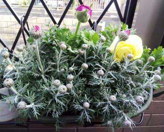 1月22日に寄せ植えしたアネモネとラナンキュラス