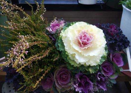 12月13日に寄せ植えした葉ボタンも、まだかわいく健在