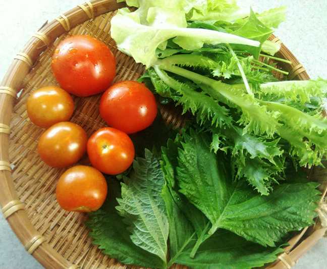 ​ミニトマト4個と中玉トマト2個(4個目)・レタス・大葉​