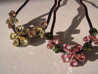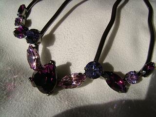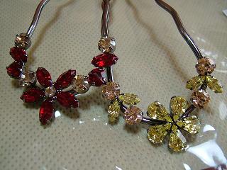 ハーベストのヴィンテージローズを、ピンクや紫が好きな弟の彼女に。3日に結納をしたのでお祝い代わりにかんざしと一緒にプレゼント。彼女は髪の量が人の倍あるらしく、通常の夜会巻きコームを使ったら2つ使ってもきっちり止まらなかったんだって。メシメシと音がしたと思いつつなんとか押し込んでまとめようとしたら髪の重さに負けて歯が数本折れちゃってたそうな。量が多すぎるせいで壊れたバレッタやかんざしが山ほどあるそう。私の髪の量は人の半分。うぅ。。。1/4でいいから髪の量を分けてほしい。使ってみる?と渡してみて、練習すること10分近く。最初は苦労してたけど、きっちり止めれるようになった。私が使った時のようなあまりがないのよねぇ。。。きれいにお手本のように止まっててちょっぴりジェラシー 今まで使ったコームと違ってがっちり止まってる、夜会巻きは私にはできないと思ってた、と彼女は大喜び。オマケのかんざしも慣れた手つきできれいに使ってる。...私よりうまいよね。。。眺めてたら着画撮り損ねた。シッパイシッパイ(・_・ゞ-☆ 練習してた間にスワロが1個取れちゃったみたいで弟が落ちたスワロを発見。信じられないくらいきれいにポロッと。...こんな風に取れてくれたら再利用できるのにね。。。自分でビーズ用のボンドで止めるっていってたからそのまま渡したけどあと2週間くらいは保証期間内だからね、とも伝えておいた。ミラージュのカスタマができたから、今度は通常コームのカスタマにも挑戦してみたくなった。まず色を変えたいのが未開封のカリビアンブルーオパールのハーベスト。取り除きたいカラーはヴィンテージローズで基本的に好きな色。あんな風にきれいに、再利用できるように取れてくれたらいいのにな。サイズ測って注文しちゃおう。