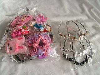 3才の姪っ子(ピンク好き)にあげると喜んでもらえた。外から見ただけでは気づかなかったものも入ってたみたい。写真撮らせてね。とちゃんと断ってから。。。 ぱらちゃん友情(?)出演黒のカチューシャと黒系リボンに白花のゴム。カチューシャはピンクか白かと思ってたから黒で私はがっかりしたけど「これ、結婚式につけていけるね」と本人は喜んでる。ゴム2個ずつセット。ハート、ハートにいちご、薄紫系のリボン、プラスチック(?)のボンボン。パッチン止め。女の子、水玉リボン、うさぎさん、さくらんぼ、ピンク地にバラ。ようやくここでうさぎさん1つだけ。ウサギさん、クマさんが少なくて私は残念だけど本人は気にしてないから...いっか。総勢11アイテム。サイトで告知してたより数は増えてる。また次も買ってみたいな、って満足の内容...だけどできるならアイテムを選んで買えるともっと嬉しいかも。
