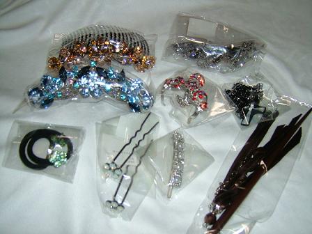 やっと届いた。この福袋シリーズ、いろんな方のネタバレを拝見してるけど【第○弾】ごとにほとんど同じ色が入ってるみたいね。あらかじめセットされてる...って、こういう意味だったのかな?ネタバレを拝見した中ではコンツェルトの色が違うだけみたい。開封してないから見づらくてゴメンナサイ。交換をお願いしようかな...と思ってるのでそのままで。【ローラップコーム】シンフォニー : ブラウン【ローラップコーム】コンツェルト : ブルー【U字ピン】カノン同色2本セット : ホワイトオパール【パッチン留め】パールキュービックライン : ホワイト(色展開なし)【バレッタ】ロングバタフライ : ブラック【ネックレス】クリアクロスオーバル : クリアクロス(色展開なし)【ヘアゴム】カメリアダブル : フォレストグリーン【バンス】ラインバンス・ファンタジア : レッド【かんざし】おはしスティックA : ブラウン※はお目当て、は気に入ってくれる人が見つかればいいなと思ってた品※メインのコーム、思ってたより大きくてびっくりした。ただ、輝きがスワロにしてはちょっと控えめに感じるのは気のせい?紫じゃなくてよかった~。赤とか緑とか、私にとっては使いにくそうな色が来るのを覚悟してたからブルー・ブラウンと使いやすい色がきてくれて嬉しいカノン、カメリア、両方とも好きなお色。ここまででも充分お買い得。買ってよかった福袋になってる。蝶とか虫系、クロスはパスしたいモチーフ。パッチン止めは使わない。バンズは...私の髪質・量だと使いにくいことがやっとわかってきた。おはしスティック...気に入った方がいらっしゃれば交換できれば嬉しいけどせっかくベースになるものを手に入れたからカスタマに挑戦してもいいよね。評判が悪いのを知りつつ買ったけど、意外とよかった。...Nさんの福袋よりかなりいいですよ。。。そんなに詳しく見てないけど、気になるヘンなところもなさそう。いい買い物でした♪Nさん派だったけど、これを機にLMさん派になるかも。。。